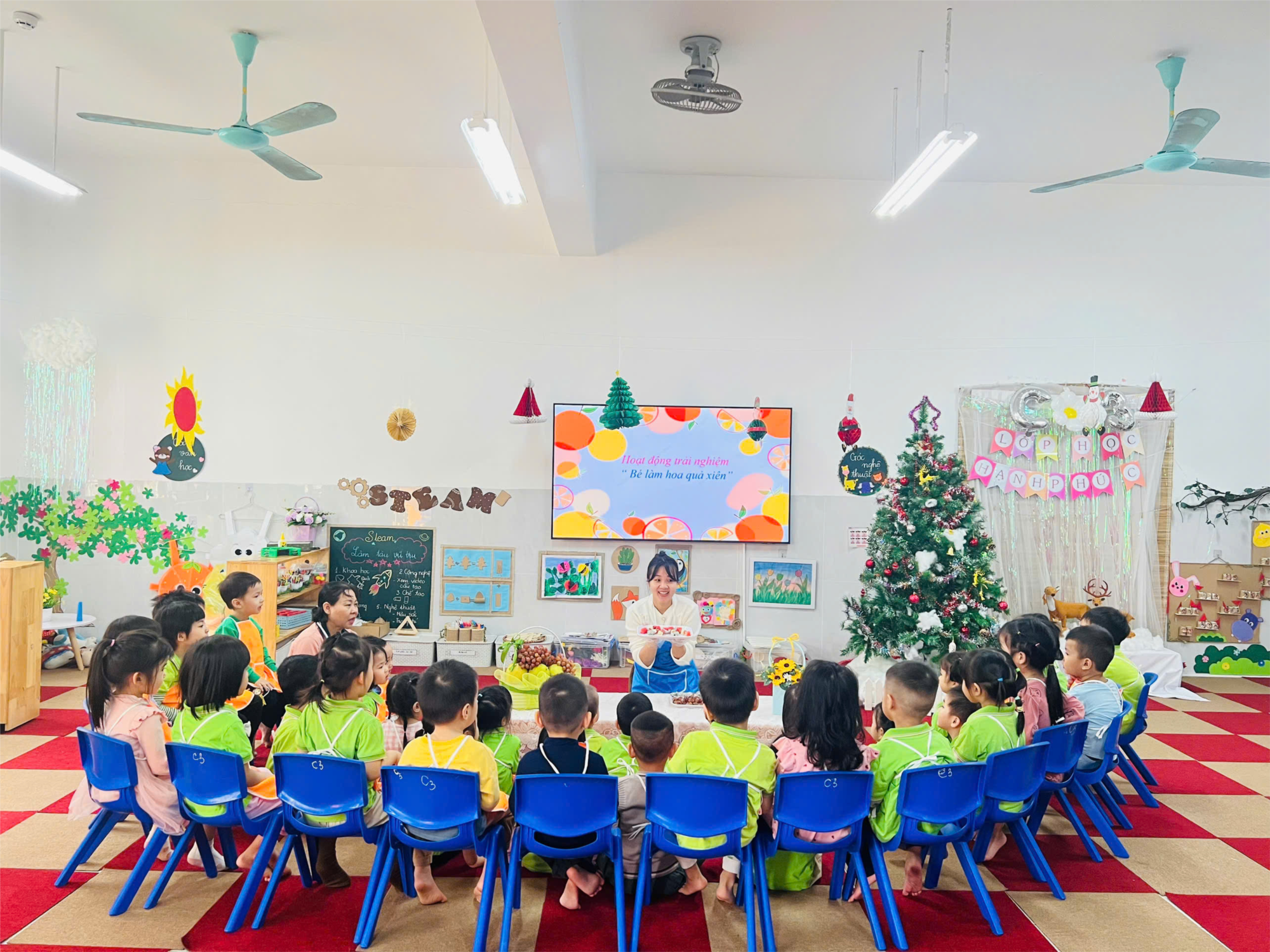 Ở đây trẻ được trải nghiệm, tự mình khám phá, là điều mà các cô giáo trường mẫu giáo Măng Non chú trọng mang tới cho trẻ, trong các hoạt động thường nhật. Các con say sưa, khéo léo tạo cho mình những xiên hoa quả thật đẹp mắt, cùng vui vẻ bên nhau thưởng thức vị ngon ngọt của trái cây mọng nước,…
