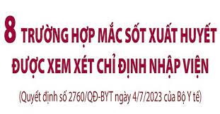 Ngoài việc chỉ định nhập viện đối với các trường hợp mắc sốt xuất huyết ở mức độ cảnh báo và mức độ nặng, theo hướng dẫn mới của Bộ Y tế (Quyết định số 2760/QĐ-BYT ngày 4/7/2023), khi mắc sốt xuất huyết ở mức độ sốt xuất huyết Dengue, có 8 trường hợp cũng được xem xét chỉ định nhập viện.
