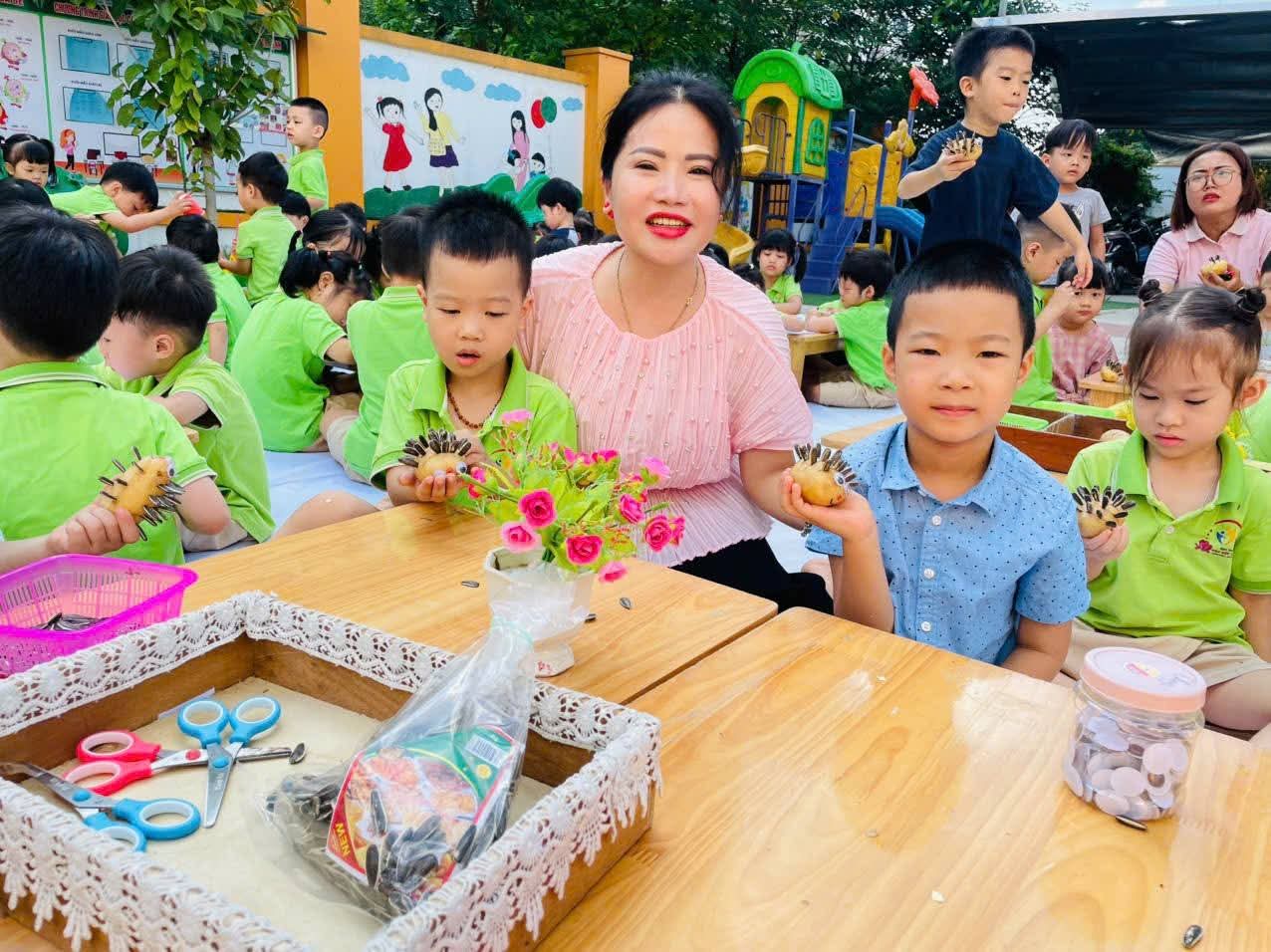 Với sự hướng dẫn tận tình từ các cô giáo, cùng sự khéo léo và trí tưởng tượng phong phú, các bé đã tạo nên những sản phẩm vô cùng đáng yêu và độc đáo. Hoạt động không chỉ giúp các con rèn luyện sự khéo léo của đôi tay, mà còn khơi gợi tình yêu văn hóa dân gian, tinh thần đoàn kết và niềm vui khi được tự mình trải nghiệm.