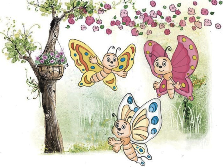 Dưới giàn hoa tường vi rực rỡ là nơi ở của rất nhiều loài bướm. Ở đó có ba chú bướm nhỏ là Bướm Vàng, Bướm Trắng và Bướm Hồng. Ba chú là anh em họ của nhau, lúc nào cũng yêu thương, khăng khít. Bất kể nơi nào có Bướm Vàng thì người ta cũng thấy có mặt hai chú bướm còn lại. Bố mẹ của cả ba rất yên tâm.
