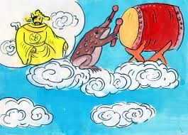 Ông trời cho gọi thần mưa đến.