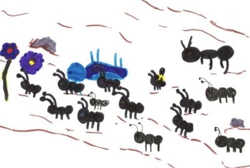 Đàn kiến lại xúm vào khiêng chiếc lá, kiệu bà kiến lên một bông hoa hướng dương cách đó không xa. Bà kiến được ở nhà mới, sung sướng quá, nói với đàn kiến con: