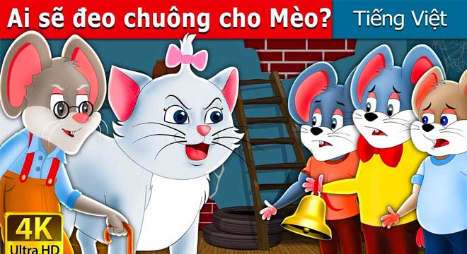─ Tô !important;i xin có ý kiến. Sở dĩ chúng ta bị bắt là bởi vì chúng ta không biết khi nào mèo đến cạnh chúng ta. Bây giờ, chúng ta hãy đeo cái chuông này quanh cổ mèo. Như vậy, khi nào mèo đến gần, chúng ta sẽ đều nghe rõ và dễ dàng lẩn trốn.
