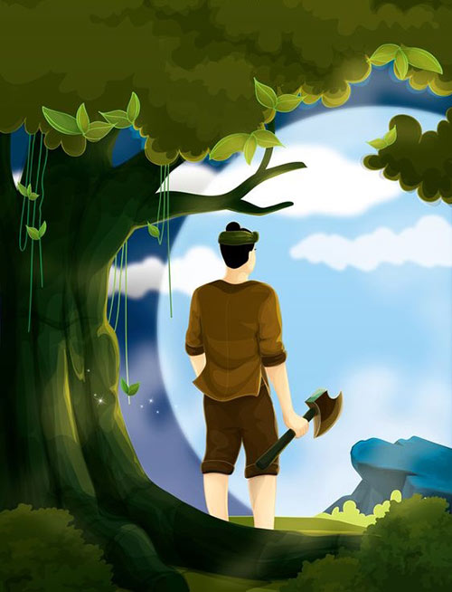 Nói xong, ông lão chống gậy đi còn Cuội thì gánh cây về nhà trồng ở góc vườn phía đông. Nhớ lời ông lão dặn, Cuội ngày nào cũng tưới cây quý bằng nước lấy từ giếng trong.