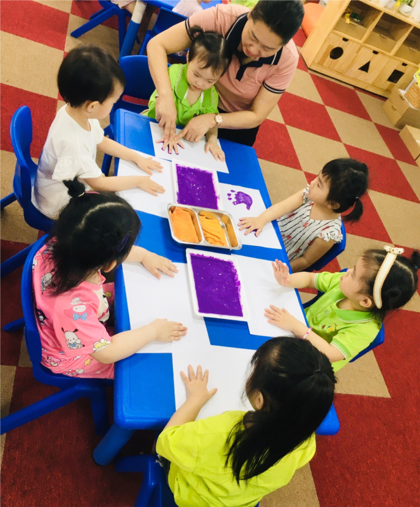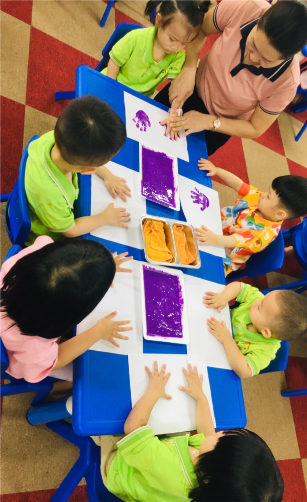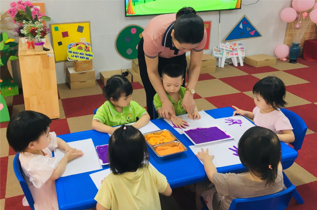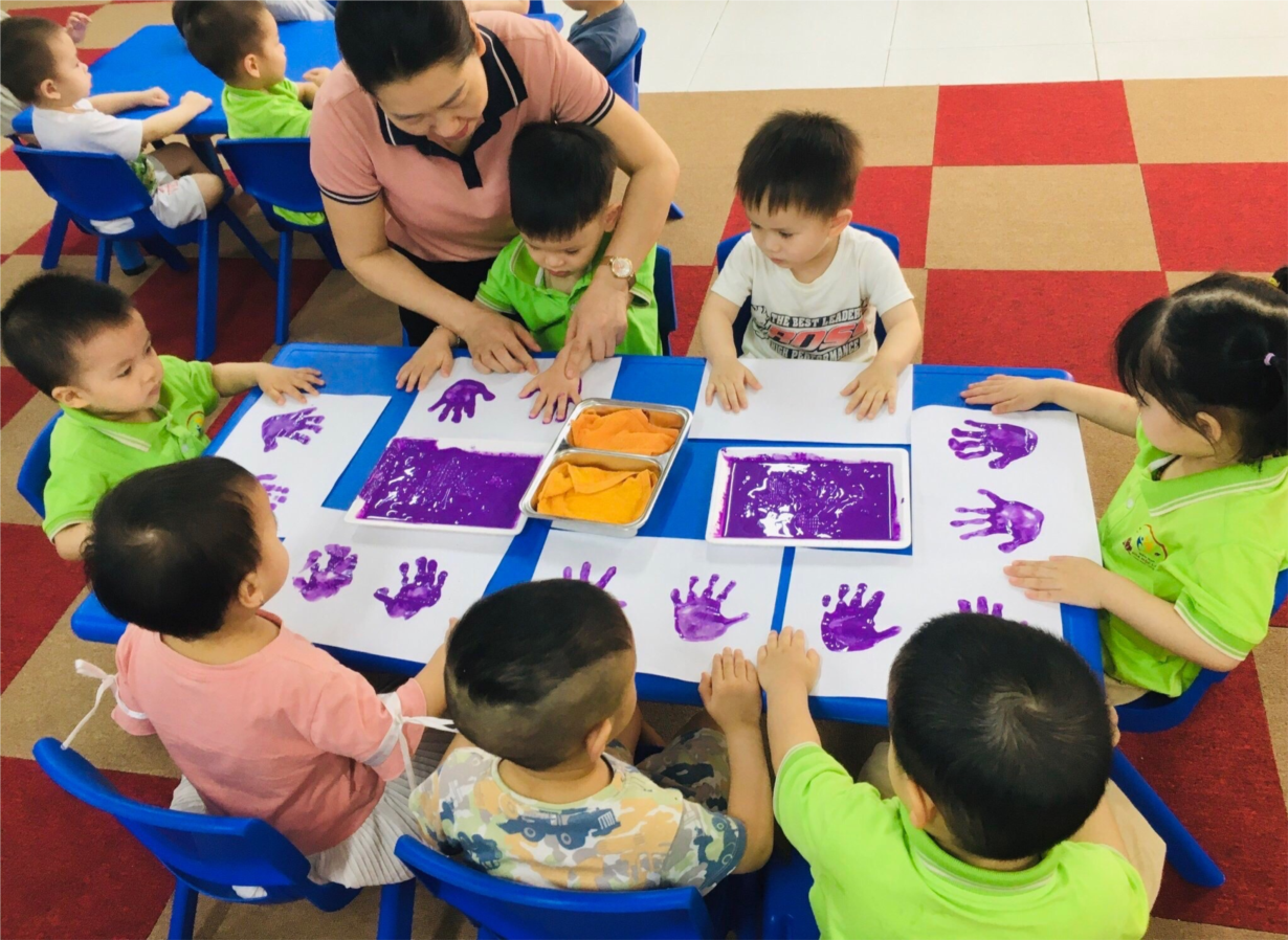 Hoạt động trải nghiệm "In bàn tay làm backdrop" - Lớp nhà trẻ D1