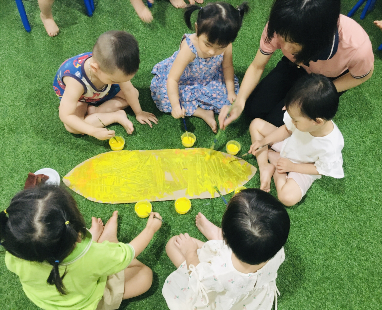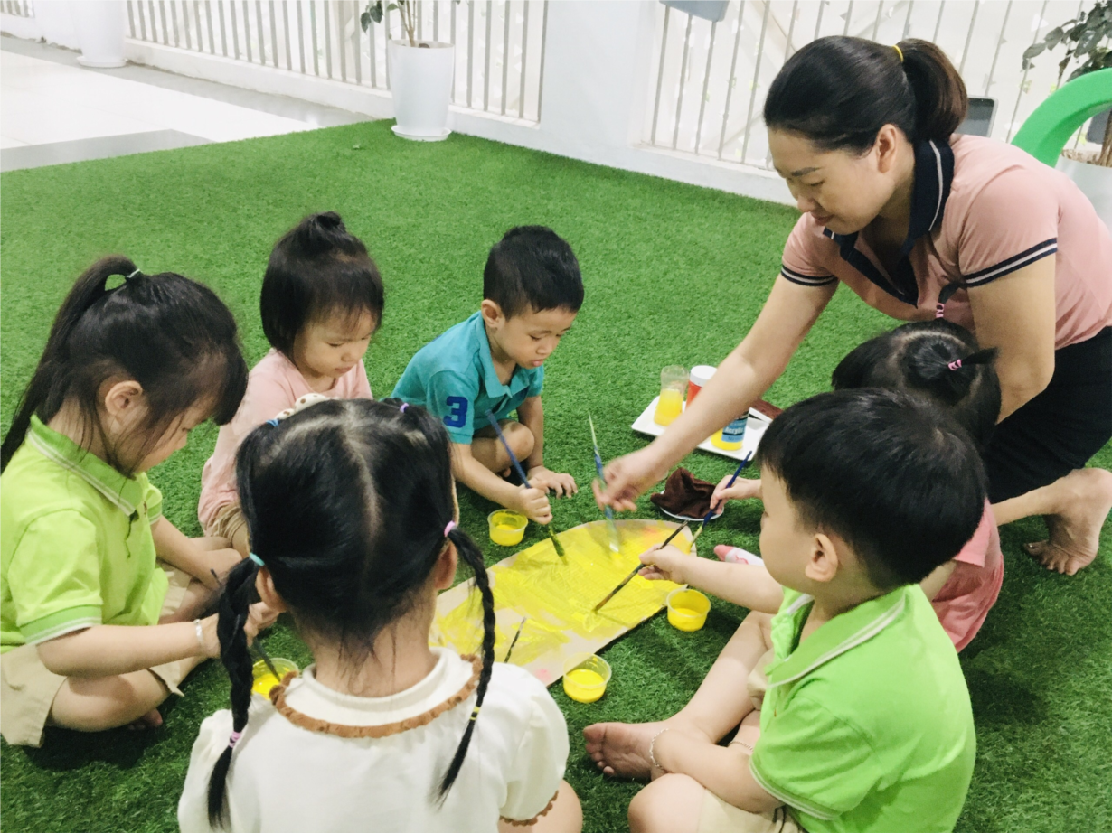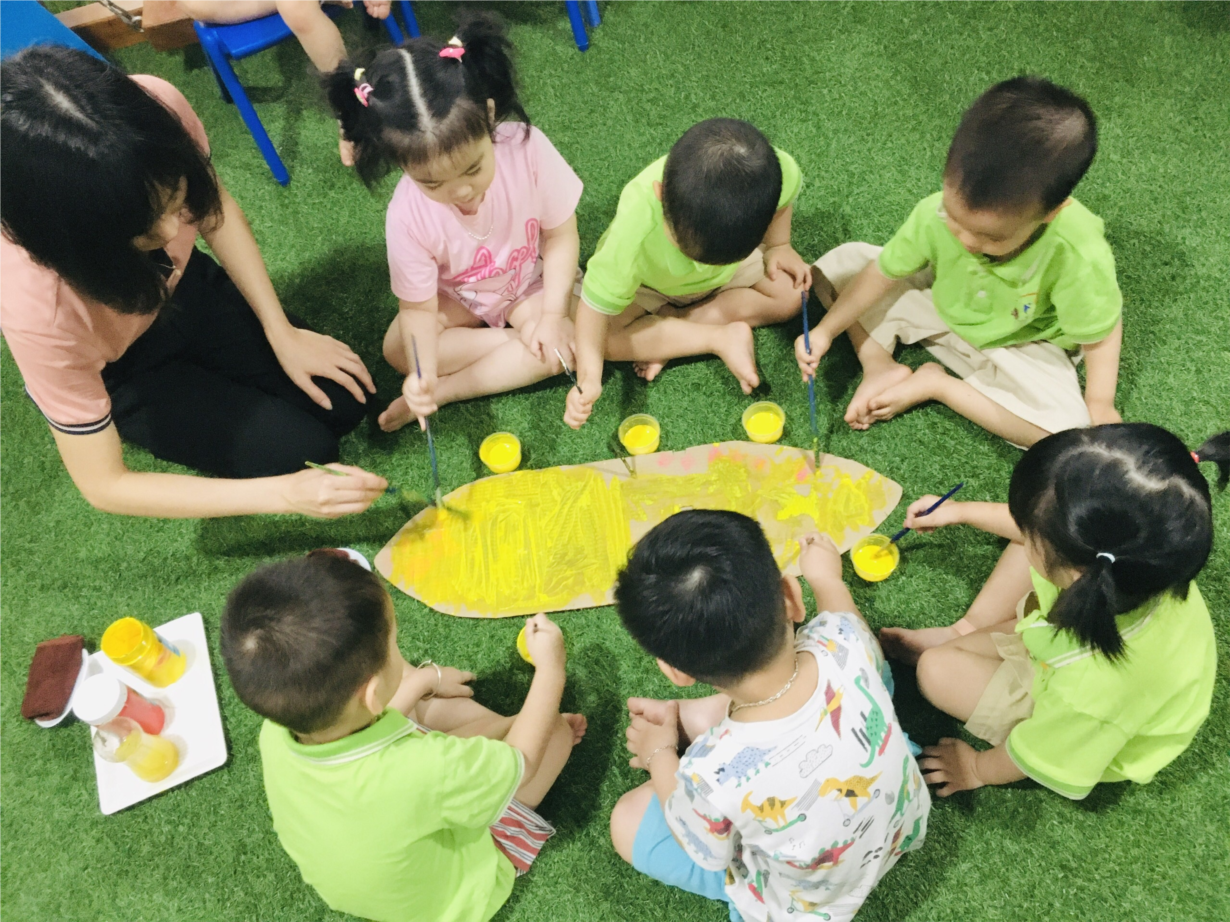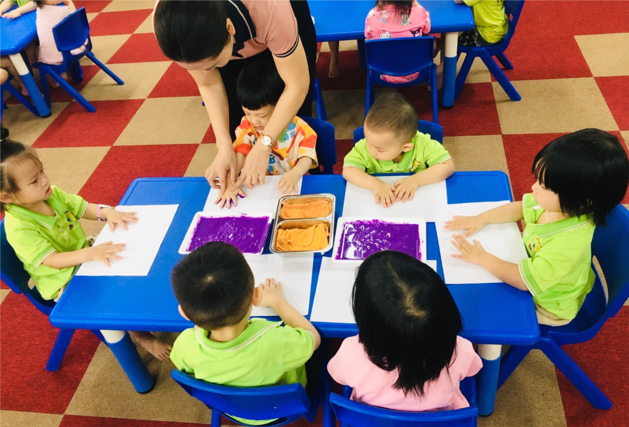 Hoạt động trải nghiệm "In bàn tay làm backdrop" - Lớp nhà trẻ D1