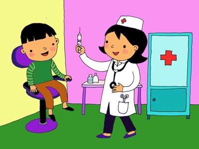 Bé tập làm bác sĩ