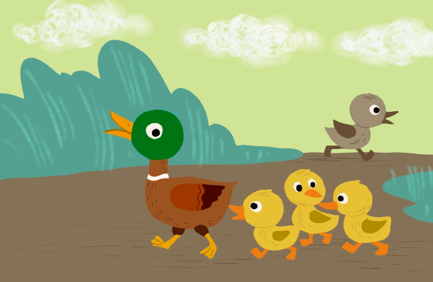 Một ngày đẹp trời nắng ráo, Vịt mẹ quyết định dẫn đàn Vịt con đi ra ngoài chơi. Trước khi đi, Vịt mẹ dặn dò đàn con: