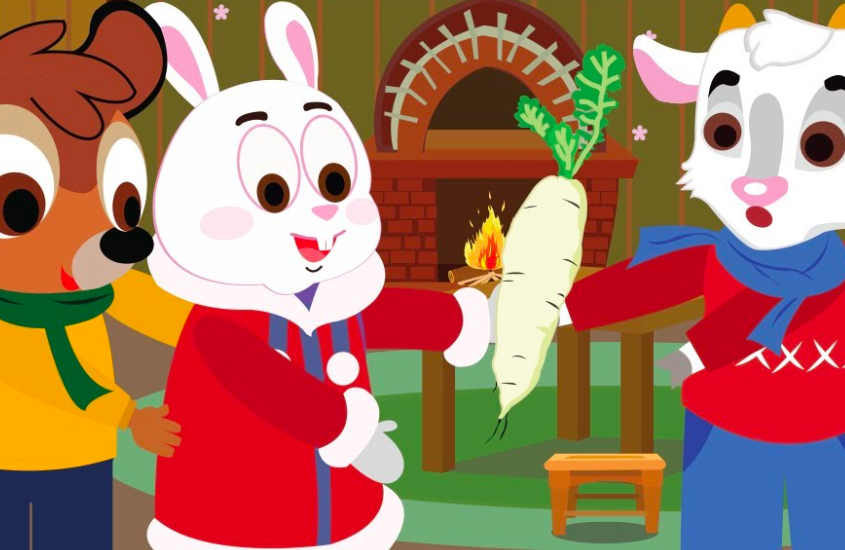 – “Bạn Hươu ơi, bạn Dê ơi hãy đến nhà tôi này, chúng ta sẽ cùng ăn củ cải trắng”