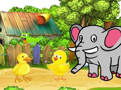 Vào một buổi sáng mùa xuân đẹp trời, gà con rủ vịt con ra sân vườn chơi. Tại đây, Gà con rủ vịt con đi bắt sâu bọ, các con côn trùng gây hại cho các loại cây trong vườn. Do có mỏ nhọn nên gà con bắt sâu bọ rất nhanh và dễ dàng, nhưng vịt con lại không có mỏ nhọn nên không thể nào bắt sâu bọ giống gà con được. Đột nhiên, có một bác voi xuất hiện, bác voi này dùng chiếc vòi của mình để khều ra con sâu rồi đưa lại cho chú vịt con. Cả chú gà con và vịt con đều nói lời cảm ơn đến bác voi.
