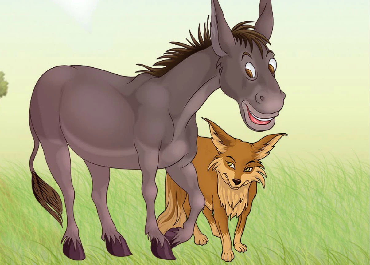 Một ngày nọ, khi đang đi, chú lừa gặp một con cáo và kết bạn với no. Chúng tìm thấy một cánh đồng trồng toàn dưa hấu và cùng nhau ăn. Dưa hấu quá ngon nên lừa ăn rất nhiều và cao hứng nói với con cáo rằng: “Tôi muốn hát”.