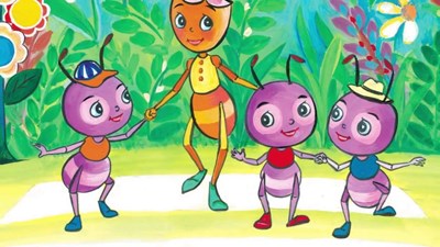 Trong vườn mơ mát mẻ, tận dụng cái thước mét của ai để quên, thế là đã có con đường phẳng lì, thẳng tắp. Các chàng Kiến trẻ chỉ cần đắp hai bên vỉa hè và kẻ đường ranh giới.